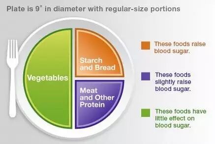 最好用一个盘子来控制食量,一餐只准备一盘,并将盘子的空间分为三份,分别填充不同的食物,以研究饮食健康并令人满意的。遵循这一规则可以增加非淀粉类食物的摄入,达到减肥和控制糖尿病病情的效果。具体做法是:将盘子分为两半,其中的一半装满非淀粉类的蔬菜,如菠菜或西兰花;接下来,将剩下的一半再分成两份,其中的一半装淀粉类的食物,如面包或披萨,另一半装肉或其他蛋白质类食物。你还可以再加200毫升的低脂牛奶和200克的水果。
