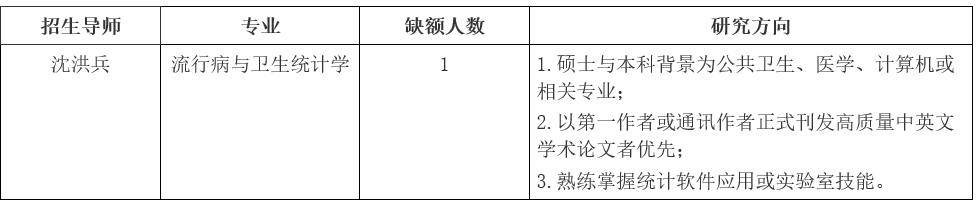 2.学术要求。硕士与本科背景为公共卫生、医学、计算机或相关专业;以第一作者或通讯作者正式刊发高质量中英文学术论文者优先;熟练掌握统计软件应用或实验室技能。