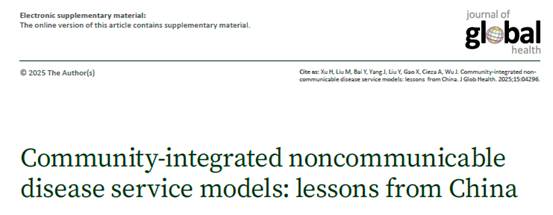 前,心血管疾病、糖尿病等慢性病已成为全球健康领域的重大挑战,低收入和中等收入国家面临的应对压力尤为突出。近日,《全球健康杂志》(Journal of Global Health)发表了由世界卫生组织和慢病中心研究团队合作开展的一项研究,该研究系统梳理并总结了中国社区整合型慢性病服务模式,为全球慢性病防控提供了重要参考。