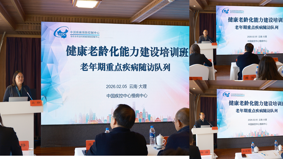 2026年2月4-6日,中国疾控中心慢病中心于云南省大理市举办健康老龄化-老年期重点疾病随访队列能力建设培训。慢病中心主任吴静、云南省疾控中心副主任查舜、大理州卫生健康委副主任、疾控局局长李宏军出席并分别致辞。来自湖北、广西、四川、云南四省项目地区各级疾控中心、基层医疗卫生机构和临床医疗机构近60名专业人员参加培训。